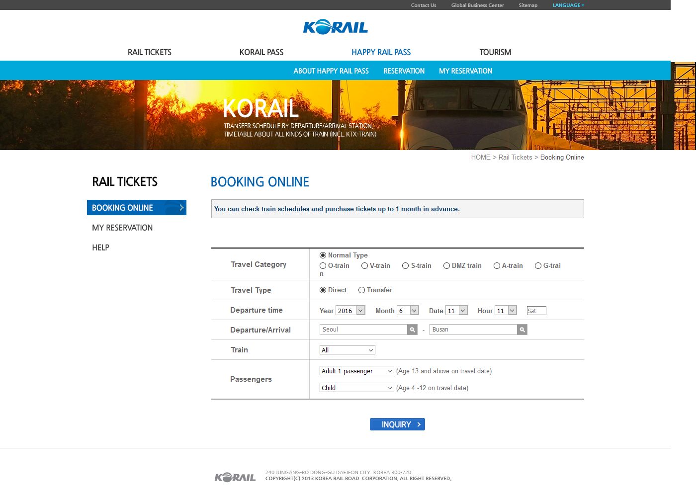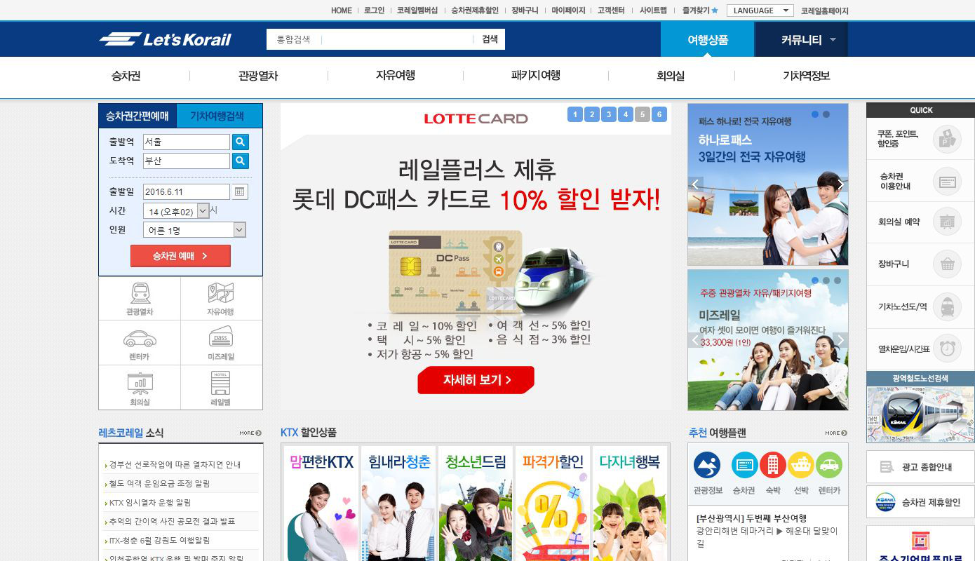 ①Let's KORAILのサイトを開く ![]() Let's Korail 左上の窓枠からでも検索できますが細かい設定ができないのでとりあえず を押して適当に検索してください。