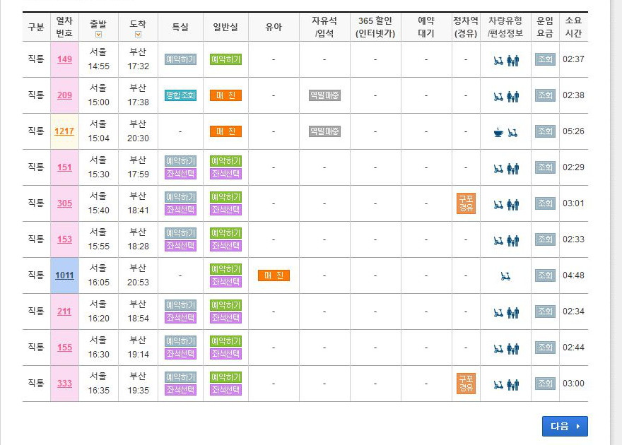 ②検索サイトを開く すると、つぎの検索サイトにたどり着くと思います。![]() 일반승차권(직통) たどり着かない方は上の画像かココをクリックして下さい。 |