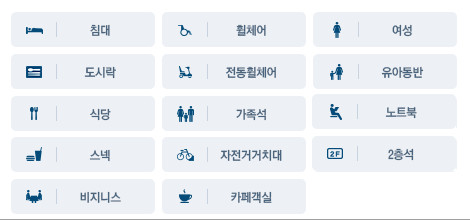 ⑤備考 検索結果で英語版と違うのは![]() のようなマークが表示されることです。ここには車内設備の案内(例えばカフェカーなど)が詳しく表示されています。 以上、韓国語版の検索方法でした。 |